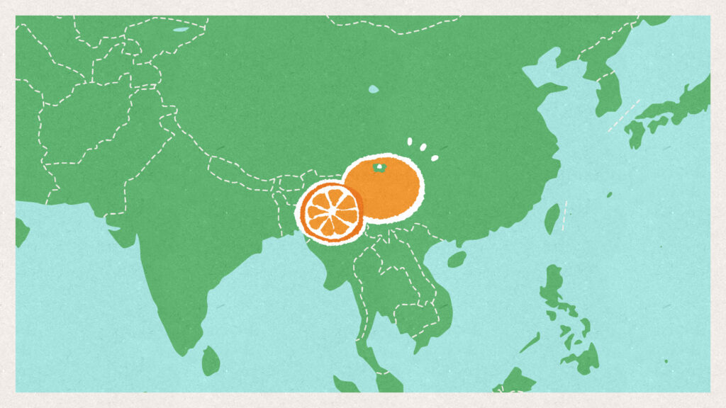 でも実際にはまったく違っていて、柑橘は正真正銘アジア生まれ。発祥の地は、ヒマラヤ山脈東南麓の中国雲南省、ミャンマー北部、インドのアッサム地方にかけてなのです。