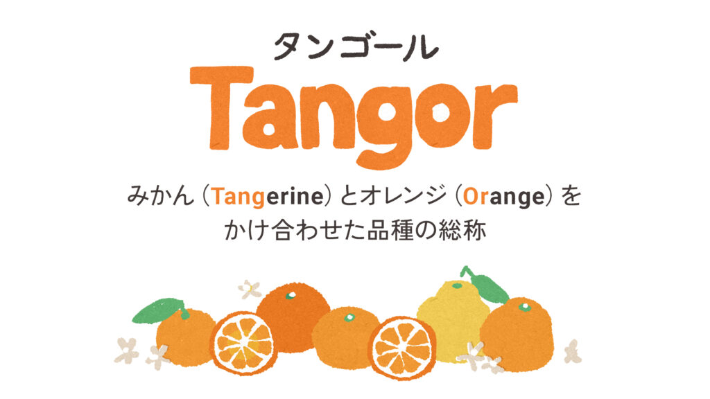 タンゴールとは、タンジェリン(Tangerine)にオレンジ(Orange)の華やかな香りを取り込んだ、皮のむきやすい品種たち。両種の頭文字を取ってタンゴール(Tangor)と呼ばわれるようになりました。